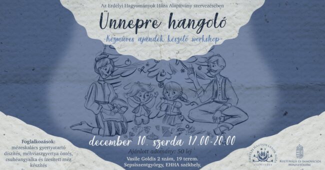 Kézműves ajándék készítő workshop Advent közeledtével ismét szeretettel hívunk egy közösségi ünnepre hangoló alkalomra, ahol a természetes alapanyagok és az egyedi alkotás öröme találkozik! Készítsd el saját, exkluzív karácsonyi ajándékcsomagodat természetes alapanyagokból, tapasztalt szakmai vezetők segítségével. Tökéletes kikapcsolódás lehet egyedül (16+), vagy egy meghitt barát-barátnő program keretében! Amit készítünk:A három órás foglalkozás során, az ünnepre…