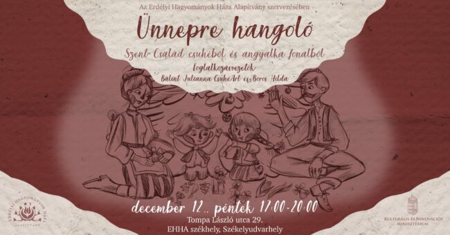 A bátrabbak csuhéból formálhatják meg a Szent Család alakjait, a kisebbek és kezdők pedig fonalangyalkákat készíthetnek – mindeközben népdalokkal, énekkel hangolódunk rá az ünnep békéjére és örömére.