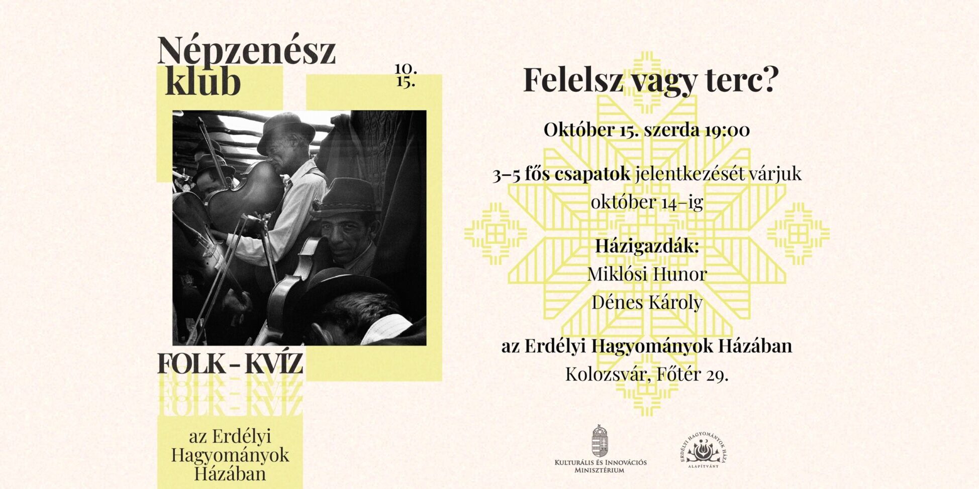 A Népzenész Klub első idei estjén játékra hívjuk egymást. Nem próbára, hanem kíváncsiságra. Kvíz, zene, beszélgetés-ismerkedés ami egyszerre könnyed és komoly. Tárt karokkal várunk minden zenészt és táncost, hogy játékosan tornáztassuk meg egymás tehetségét.