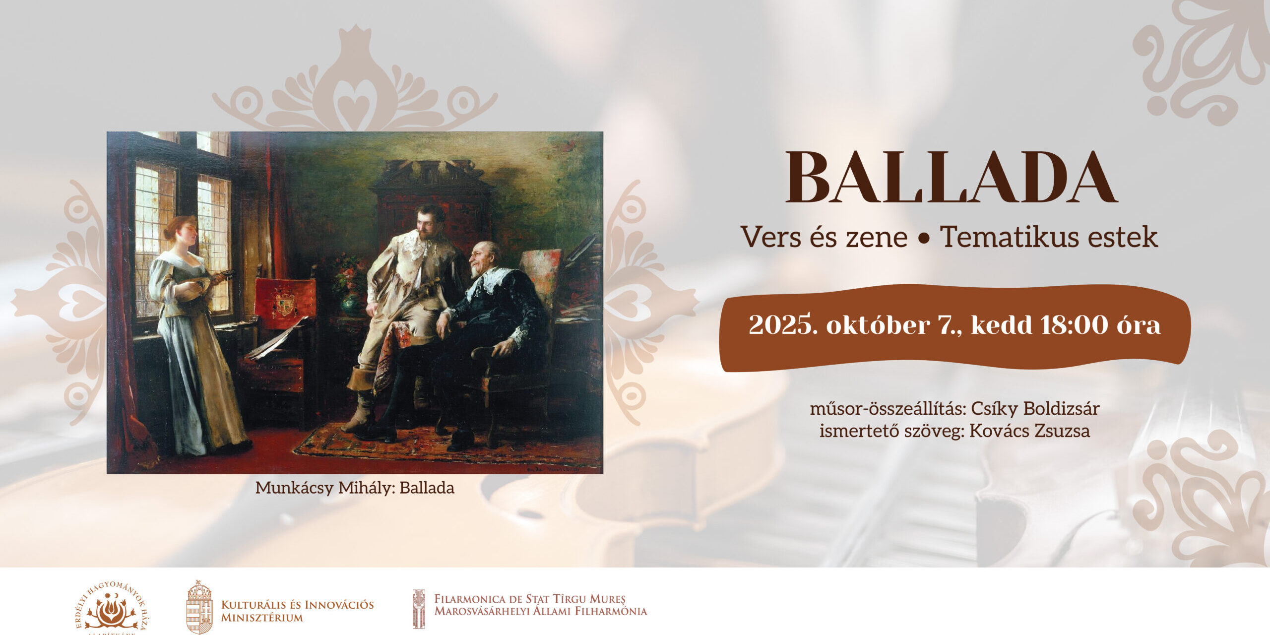 Szeretettel várunk mindenkit kedden, október 7-én 18:00 órától az Erdélyi Hagyományok Háza Bartók Béla termébe egy különleges balladaestre.