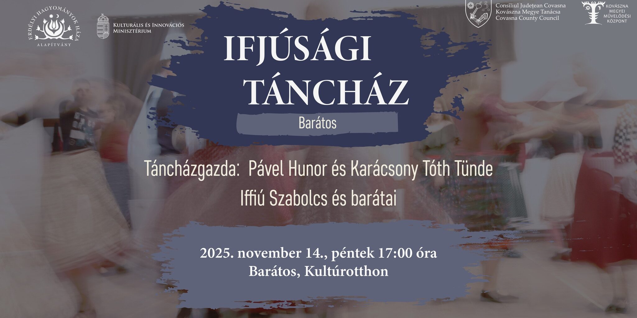 Szervezők/támogatók: Erdélyi Hagyományok Háza Alapítvány, Kulturális és Innovációs Minisztérium, Bibó József Álltalános Iskola és a Barátosi Református Egyházközség, Kovászna Megyei Művelődési Központ és Kovászna Megye Tanácsa.