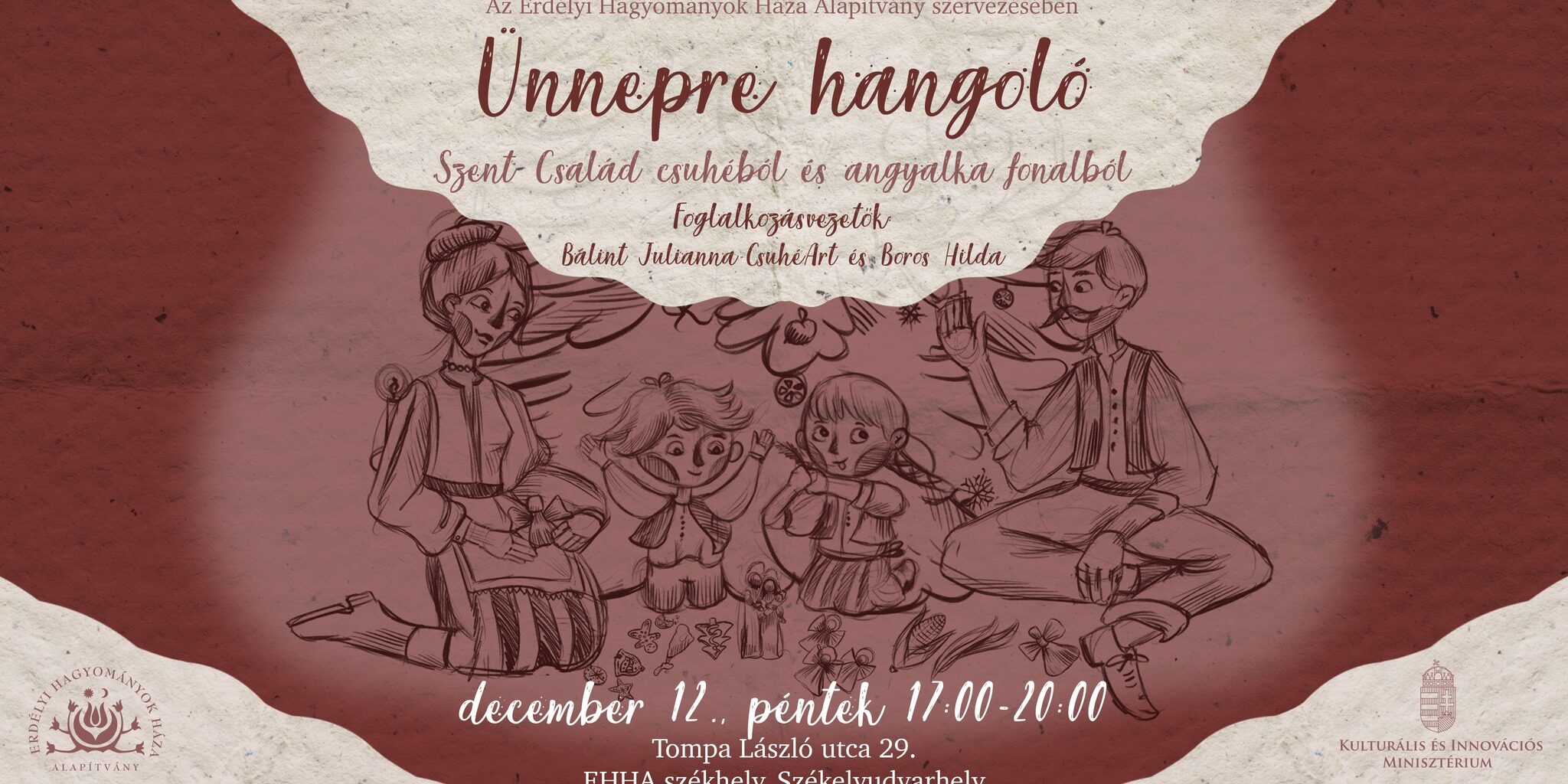 A bátrabbak csuhéból formálhatják meg a Szent Család alakjait, a kisebbek és kezdők pedig fonalangyalkákat készíthetnek – mindeközben népdalokkal, énekkel hangolódunk rá az ünnep békéjére és örömére.