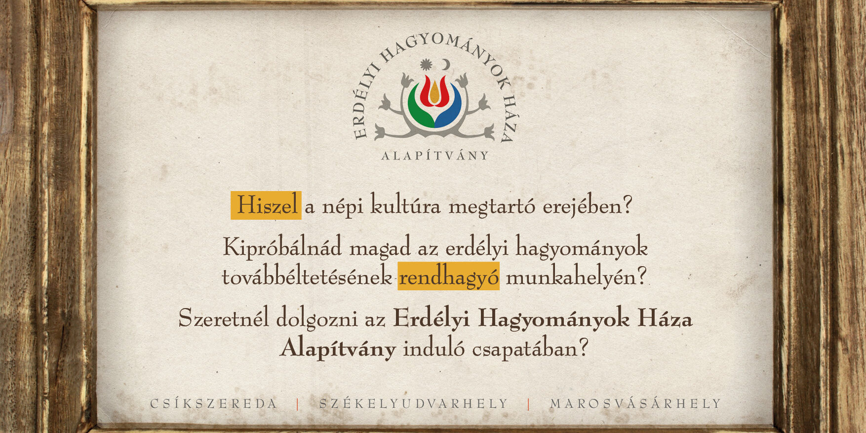 „Az Erdélyi Hagyományok Háza irodavezetőket keres a csíkszeredai, székelyudvarhelyi, marosvásárhelyi most alakuló területi irodáiba.” – áll az intézmény honlapján megjelent hirdetésben.