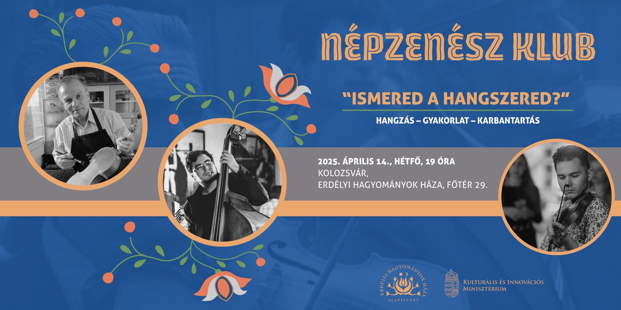 Az április 14-i kötetlen kerekasztal-beszélgetés során a hangszervásárlás, karbantartás és tudatos hangszerhasználat kerül terítékre. Szó lesz többek között a különböző hangszerek akusztikai sajátosságairól, korhű és modern megközelítésekről, valamint arról is, hogyan ismerjük fel a hangszer hibáit a hang alapján. Megosztjuk egymással, milyen szempontok szerint érdemes hangszert választani, mire figyeljünk vásárláskor, és hogyan gondoskodjunk róla a mindennapokban.