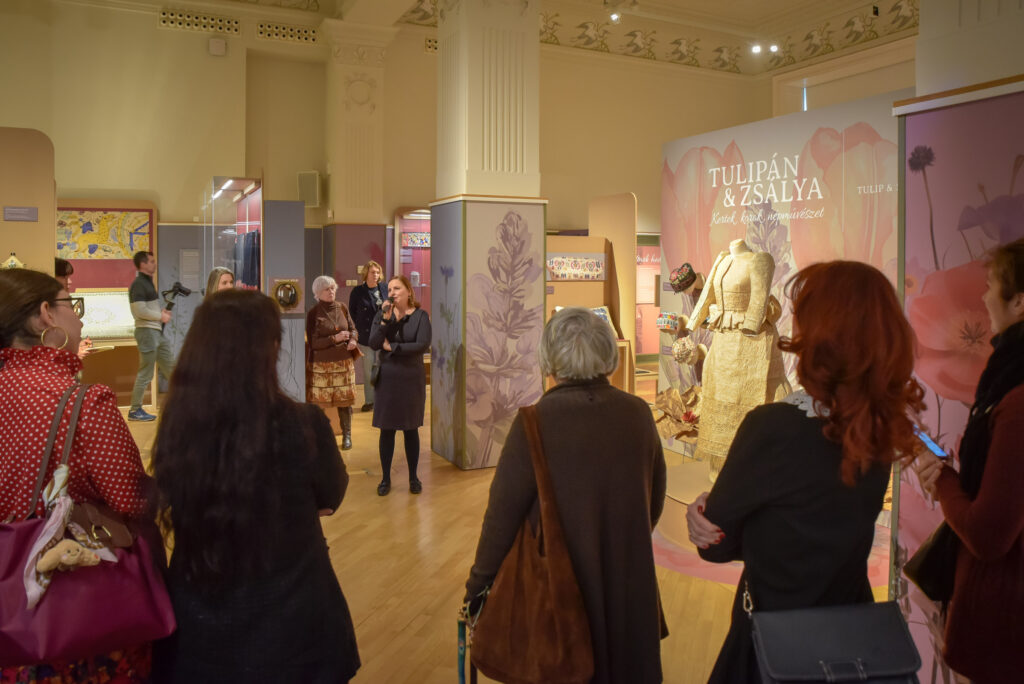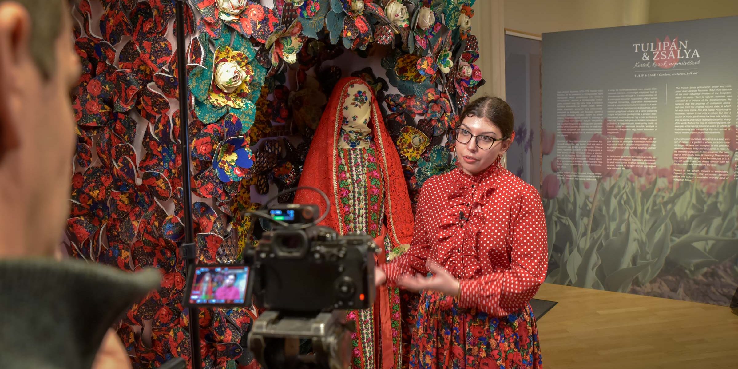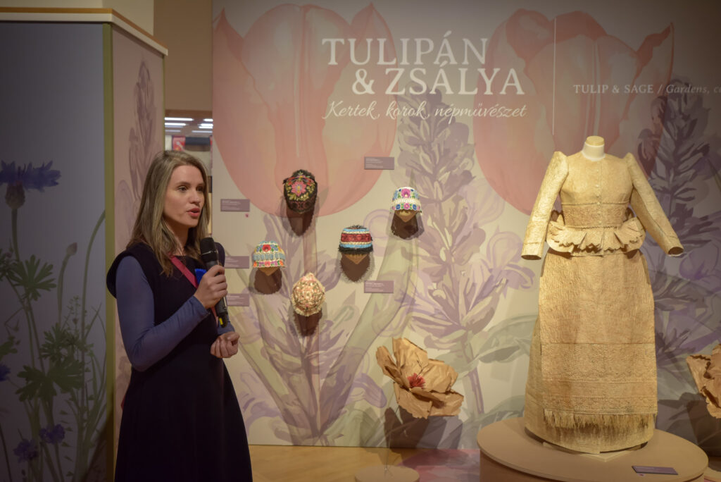 „A kiállítás a virágok, növények szimbolikáját vizsgálja, egy teljesen szokatlan kultúrtörténeti kontextusban a magyar népművészeten belül – kezdi A Tulipán & zsálya – Kertek, korok, népművészet című kiállítás tárlatvezetését Üveges Krisztina művészettörténész, a Hagyományok Háza Magyar Népi Iparművészeti Múzeum muzeológusa. – A kiállítás a keresztény kultúrkör szimbolikus növényeivel indul. Megismerhetjük a Szűz Máriához, a tisztasághoz kapcsolódó növényeket, mint a liliom, a margaréta, és más keresztény szimbólumokat, mint a szőlő. A középkorban az apátsági kertekben termesztették azokat, majd a paraszti kertek kedvelt növényei lettek.”
