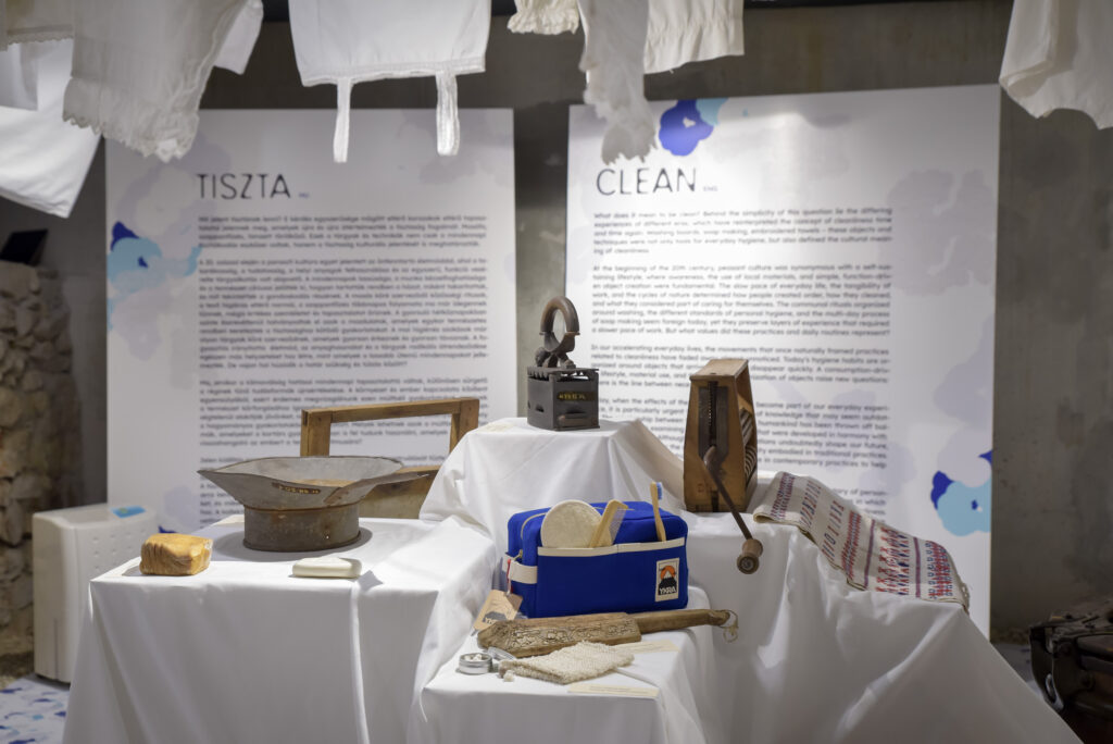 A Szabad szappanozni című kamara kiállítás az eltelt százötven év magyar tisztálkodási szokásait mutatja be. Már a cím is kifejező: a szervezők a maroskeresztúri gyermekdalra utalnak. A látogató a teremben megismerkedhet az otthon, a textíliák tisztításának a személyes higiénia hagyományaival, és bepillantást nyerhet a segédeszközök világába, például a szappan főzésébe. Jóllehet a falusi körülmények sokszor igencsak mostohák voltak, viszont a valamit magára adó gazdálkodók – saját érdekükben, a betegségek elkerülése miatt is – nagy figyelmet fordítottak a tisztaságra. E kultúrában a mosásnak, a ruhák tárolásának szigorú rendje volt, de a személyes higiéniára is gondot fordítottak, s a társadalom megszólta azt, aki eltért az ősi szokásoktól, a kialakult rendtől. Sokszor a mai tudósoknak is például szolgálnak azok az ökológiai módszerek, amikkel elődeink egészségüket védték. A kiállítás arra ösztönzi a látogatókat, hogy keressék meg a természetben azokat az az elveszett gyökereket, amik évszázadokon keresztül elődeik javát szolgálták.