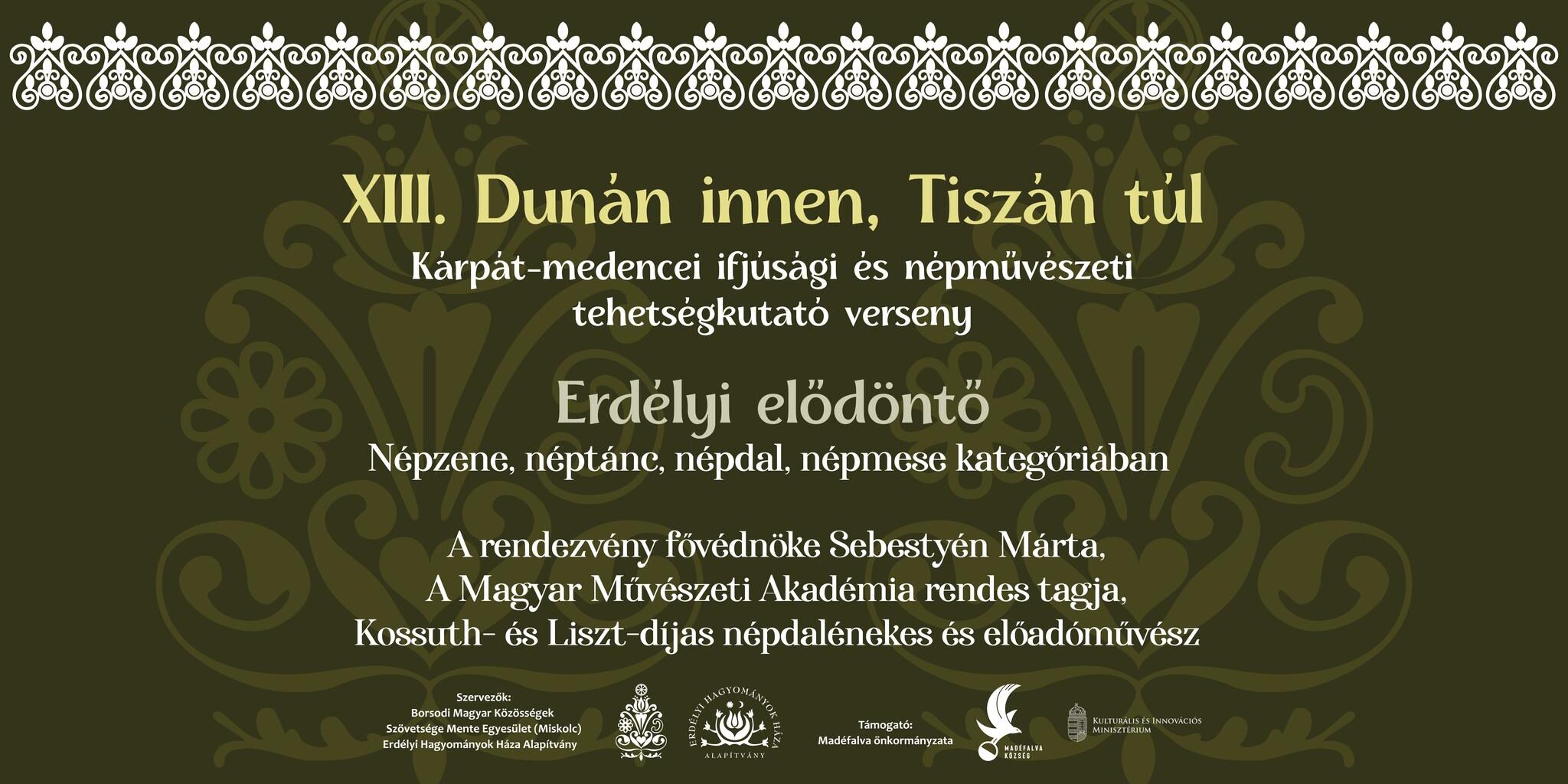 XIII. Dunán innen, Tiszán túl címmel Kárpát-medencei gyermek- és ifjúsági seregszemlét hirdet a Borsodi Magyar Közösségek Szövetsége Mente Egyesület és az Erdélyi Hagyományok Háza Alapítvány, melynek célja a tehetségek felkarolása mellett az is, hogy a művészet és a magyarság értékeit népszerűsítse a fiatalok körében. A verseny középpontjában a népi műfajok állnak, négy kategóriában: népmese, népzene, népdal, néptánc.