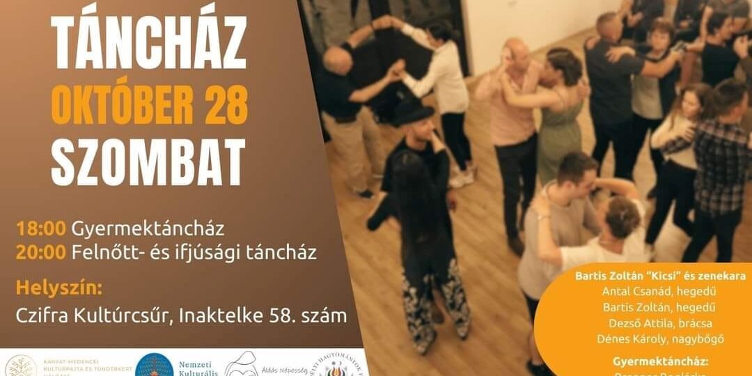Az Áldás Népesség Egyesület 2023. október 28-án, szombaton, az inaktelki Csép Sándor Kulturális és Oktatóközponthoz tartozó Czifra Kultúrcsűrben táncházat szervez kicsiknek és nagyoknak egyaránt.