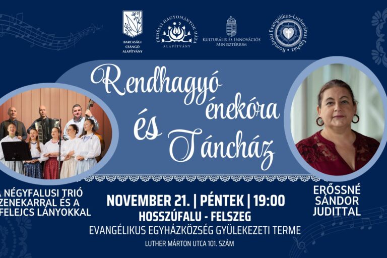 Hagyományos zsidó és magyar népzene a Muzsikás együttes és Kacsó Hanga előadásában Az Erdélyi Hagyományok Háza Alapítvány Őshonosok a hazában – európai kisebbségek népművészete című programsorozata a Kárpát-medence és Európa őshonos közösségeinek gazdag kulturális örökségét és hagyományait mutatja be. A sorozat célja, hogy hidat építsen a különböző kultúrák között, és fókuszba helyezze azokat az egyedi…