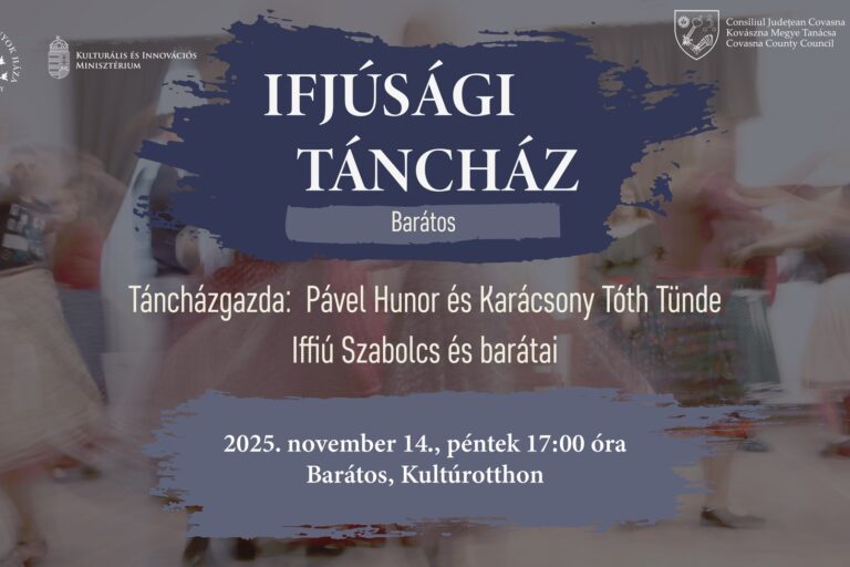 Az Erdélyi Hagyományok Háza Sepsiszentgyörgyi fiókjának szervezésében Barátosra vándorol az ifjúsági táncház!
