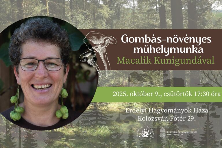 Október 9-én elméleti bevezetővel indítjuk gombás és őszi növényes műhelymunkánkat az Erdélyi Hagyományok Házában, melyet városunk energikus és örökmozgó biológusával Macalik Kunigundával tartunk.